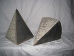 2011Some of these 4 sided pyramids have an arched floor space. It is a good contrast to a flat one and can also create a light confusion. They come always in pairs. They are simple and plain, but you can rest your eyes upon them very long. They can be arranged, standing or lying according to the owners feelings.